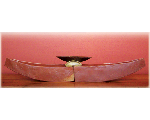 Three piece boat, 8 x 24 x 4 inches, stoneware