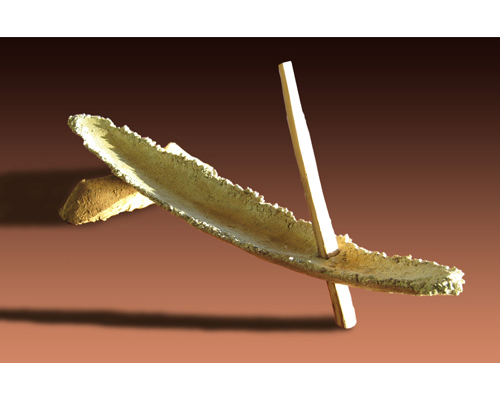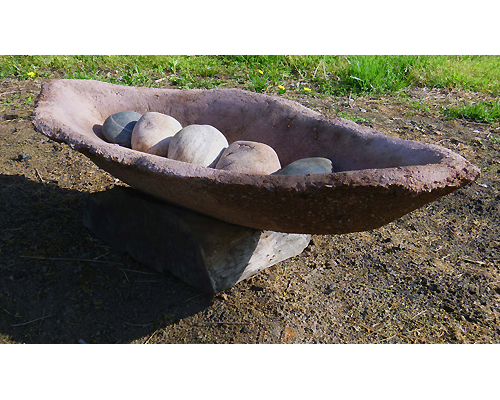 Ceremonial stone boat, 13 x 19 x 41 inches, concrete wood and natural stone, SOLD