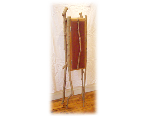 Stick Cabinet, Osage orange, bald cypress, plywoods, discarded drawer front - $350